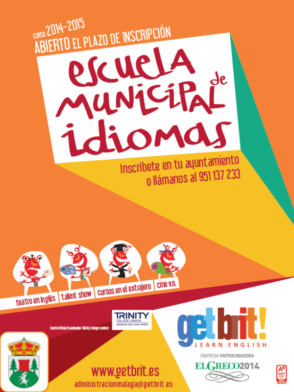 Ya está abierto el plazo de inscripción en la Escuela Municipal de Idiomas del Ayuntamiento de Yunquera para el curso 2014-2015. Para inscribirte sólo tienes que pasar por tu Ayuntamiento y rellenar el formulario de prescripción o llamar al 951137233.