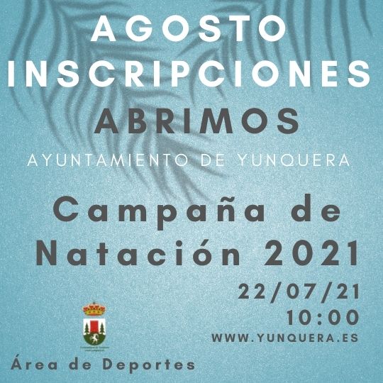 🏊♂️ El jueves 22 de julio a las 10 horas se abrirá el periodo de inscripción para inscribirte en AGOSTO a la Campaña de natación 2021.