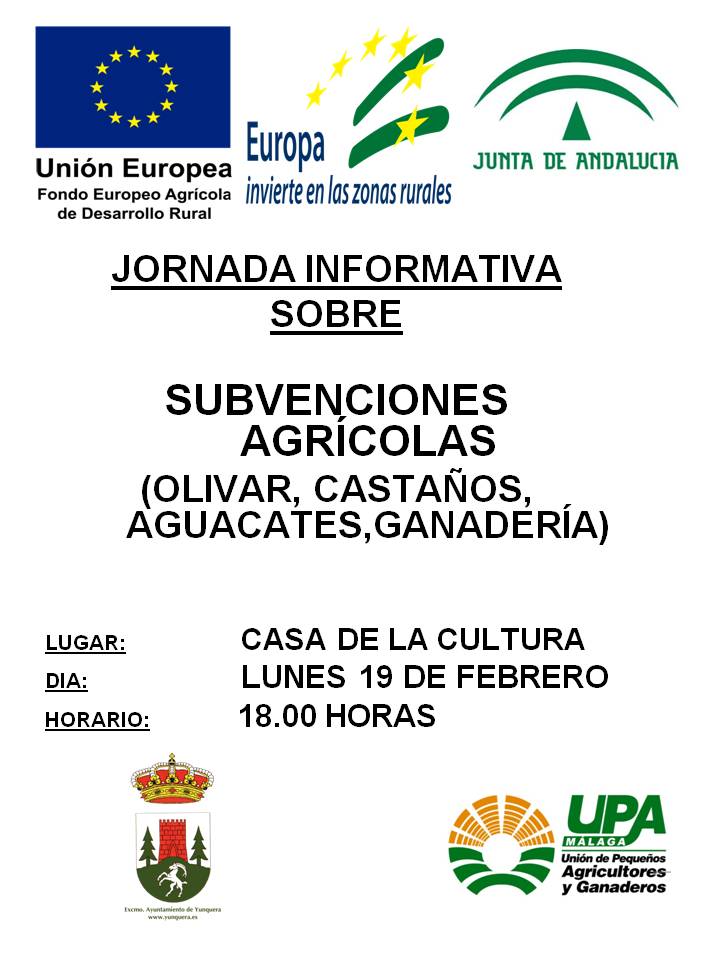 En la charla se explicará todas las novedades de la campaña de subvenciones PAC 2018, de la que ya está abierto el plazo hasta el 30 de abril. Se hará especial énfasis en cultivos  de nuestro municipio como el olivar, castaño, aguacates y ganadería.