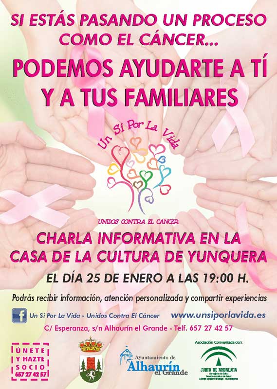El próximo viernes 25 de enero a las 19 horas en la casa de la cultura de Yunquera, tendrá lugar una charla informativa de la asociación Un sí por la vida, unidos contra el cáncer.