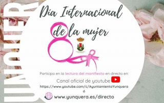 El Ayuntamiento de Yunquera, la comisión de igualdad y la asociación de mujeres AMY, en el día de mañana, con motivo del día 8 de marzo, día internacional de la mujer, retransmitirá en directo la lectura del manifiesto. La emisión tendrá lugar desde el Salón de Plenos del Ayuntamiento de Yunquera y se transmitirá a través de nuestro canal oficial [...]
