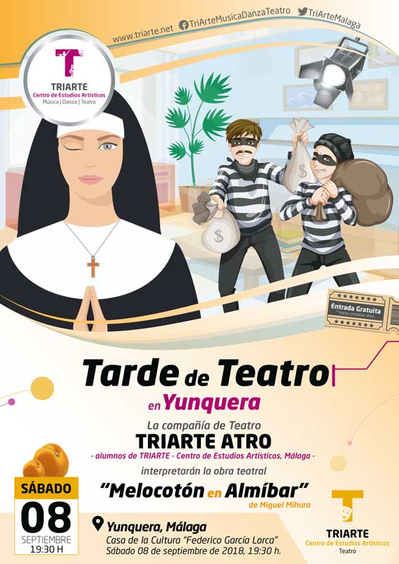 La compañía Triarte Atro, que nos acompañan por tercer año consecutivo, es una compañía formada por los alumnos del centro de Estudios artísticos de Málaga Triarte y realizan la función sin ánimo de lucro. Desde el ayuntamiento de Yunquera agradecemos una vez más su presencia en nuestro municipio y deseamos que la función sea un éxito.