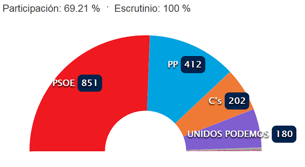 Partido Socialista Obrero Español (PSOE): 851 votos – 51’05%