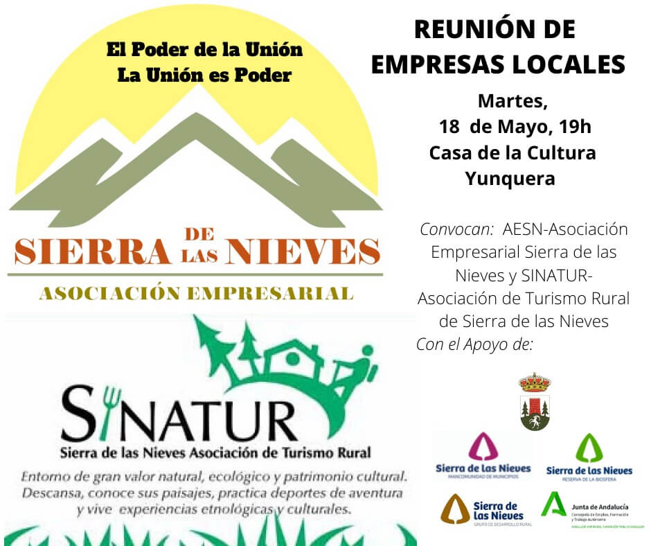 🔔 El motivo de la reunión destinada a la empresas locales es la presentación de la Asociación Empresarial Sierra de las Nieves y SINATUR, Asociación de Turismo Rural de la comarca que presentarán iniciativas conjuntas para el impulso de la empresas locales de todos los ámbitos.