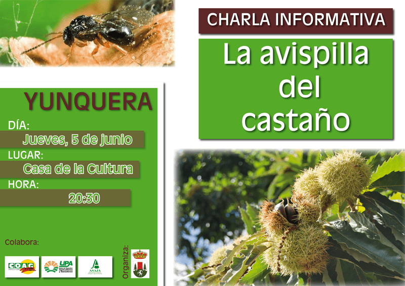 Este jueves 5 de junio a las 20:30 horas tendrá lugar en la Casa de la Cultura de Yunquera una reunión informativa sobre la “Avispilla del Castaño” organizada por el ayuntamiento de Yunquera, junto a los sindicatos agrícolas UPA, COAG y ASAJA. La “avispilla del castaño” supone un grave riesgo para la producción de castañas de Yunquera y el valle del Genal por lo que es muy importante la presencia en la reunión de todos los productores castañeros del municipio, para conocer de primera mano los efectos que ocasiona y cómo se puede identificar y combatir. Esperamos vuestra presencia.